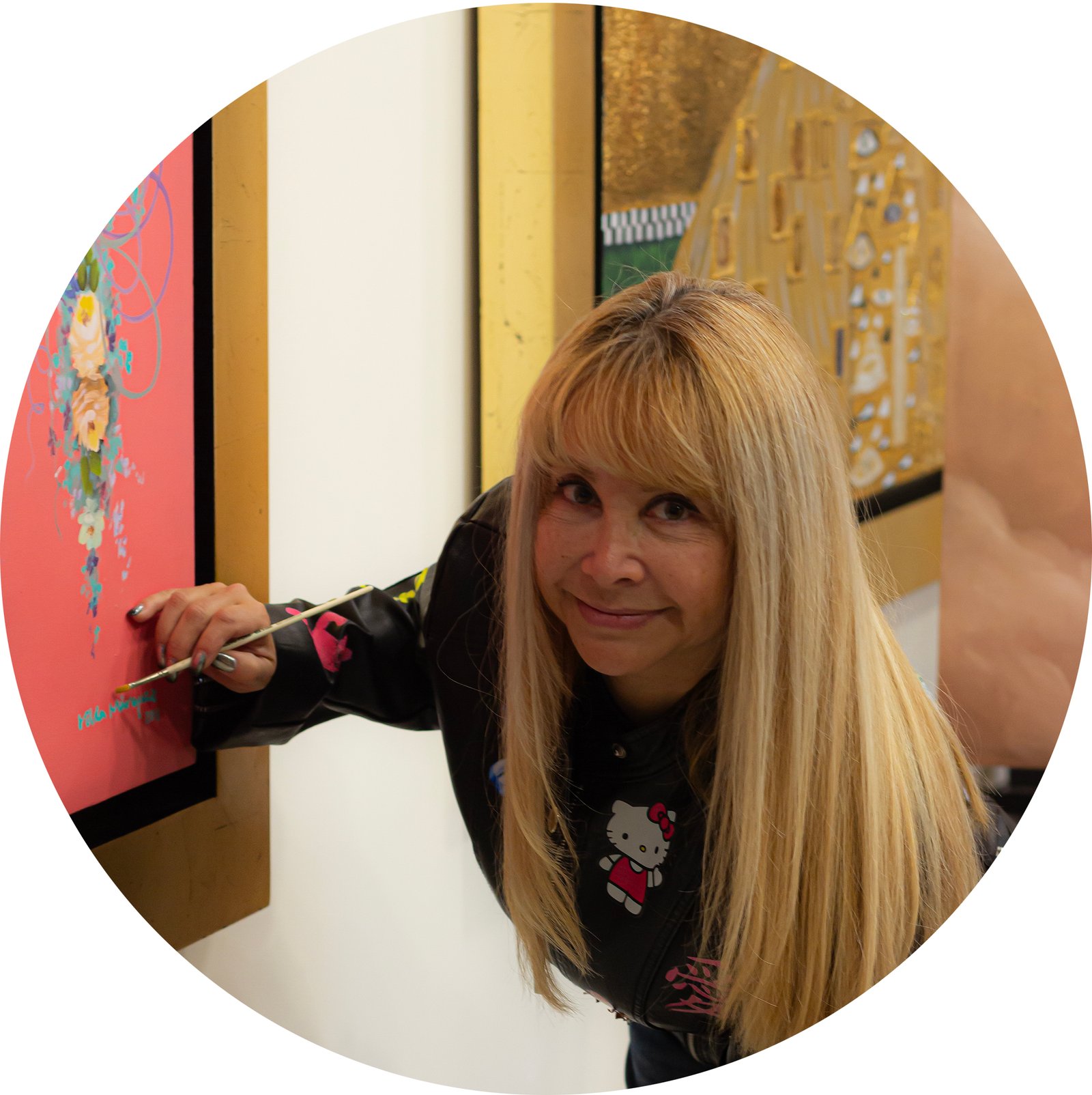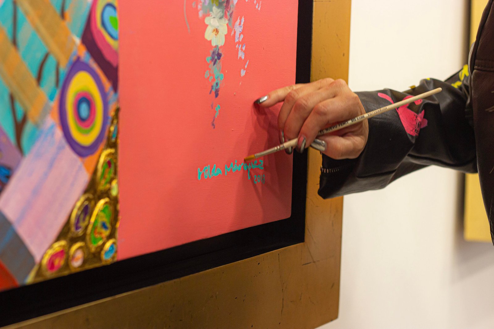 “Mi base fue la pintura sobre porcelana -mi madre y mi tía trajeron la pincelada libre, de los pinceles gordotes donde cada uno hacia lo que quería, así como la pintura sobre porcelana, donde desarrollo mi técnica con los colores y las bases, entonces vi mi mundo a través de los ojos de mi mamá”.